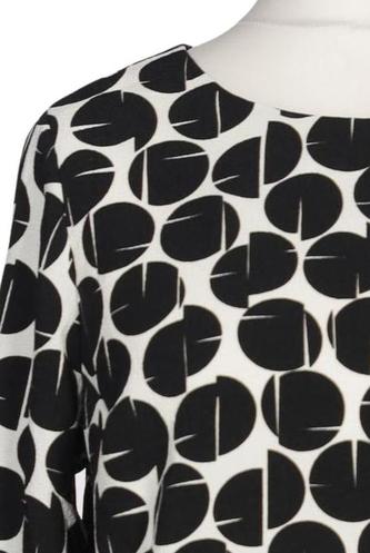 | Details | Satin, Dreiviertelarm, Rundhals, verschlusslos, Punkte |