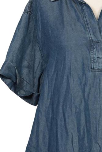 | Details | Jeans, Kurzarm, V-Ausschnitt, Front Knopfleiste, Einfarbig |