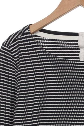 | Details | Grobstrick, Dreiviertelarm, Rundhals, Streifen |