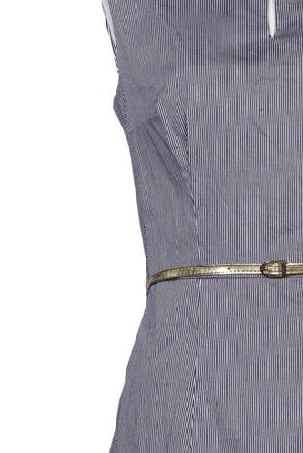| Details | Jersey, ärmellos, Bindegürtel, Rundhals, Reißverschluss/Knöpfe hinten, Streifen |