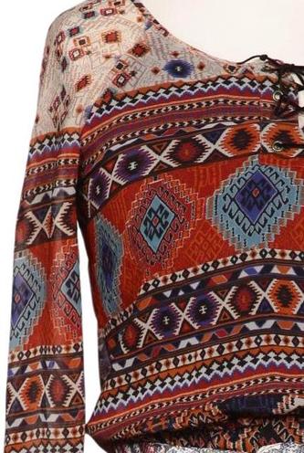 | Details | Chiffon, Langarm, Bindegürtel, Rundhals, Ethno |