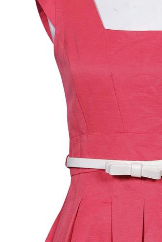 | Details | Satin, Plissee, Kurzarm, Bindegürtel, V-Ausschnitt, Reißverschluss/Knöpfe hinten, Einfarbig |