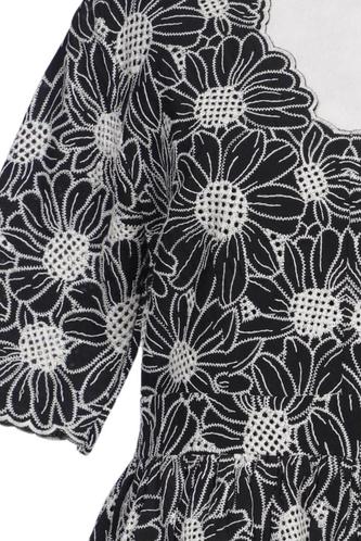 | Details | Spitze, Kurzarm, V-Ausschnitt, Reißverschluss/Knöpfe hinten, Floral |