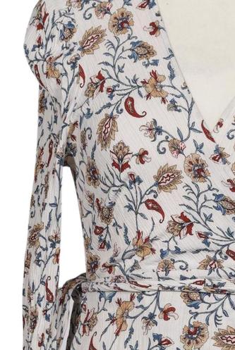 | Details | Jersey, Langarm, Bindegürtel, Wickeloptik, V-Ausschnitt, Floral |