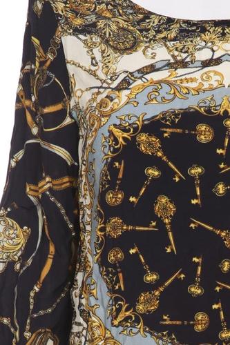 | Details | Jersey, metallic, Dreiviertelarm, Rundhals, verschlusslos, Motivprint |