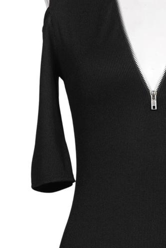| Details | Jersey, Cutouts, Kurzarm, V-Ausschnitt, Front Reißverschluss, Einfarbig |