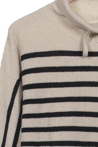 | Details | Grobstrick, Langarm, Rollkragen, Streifen |