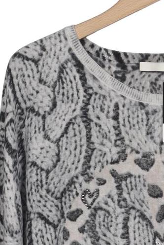 | Details | Grobstrick, Langarm, Rundhals, Leopard, Motivprint |