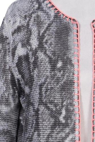 | Details | Grobstrick, Langarm, V-Ausschnitt, Front Knopfleiste, Motivprint |