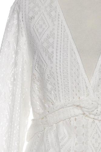 | Details | Spitze, Langarm, Bindegürtel, V-Ausschnitt, Floral |