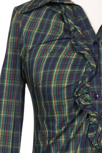 | Details | Rüschen, Langarm, V-Ausschnitt, Front Knopfleiste, Kariert |