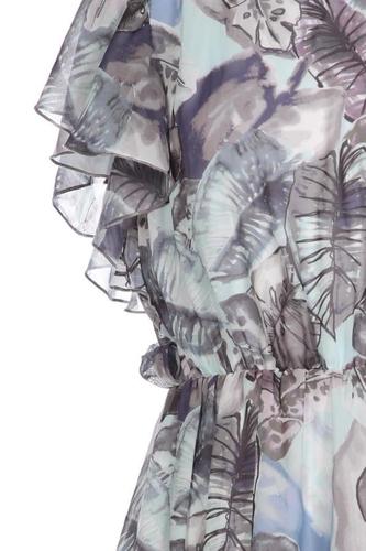 | Details | Rüschen, Chiffon, Kurzarm, Rundhals, Gummizug/Tunnelzug, Motivprint |