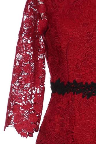 | Details | Spitze, Dreiviertelarm, Bindegürtel, V-Ausschnitt, Reißverschluss/Knöpfe hinten, Floral |