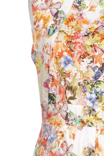 | Details | ärmellos, Rundhals, Reißverschluss/Knöpfe hinten, Floral |