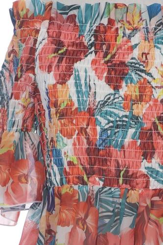 | Details | Rüschen, Chiffon, Kurzarm, V-Ausschnitt, verschlusslos, Floral |