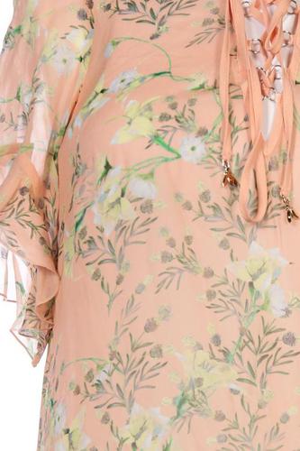 | Details | Schnürung, Rüschen, Chiffon, Kurzarm, V-Ausschnitt, verschlusslos, Floral |