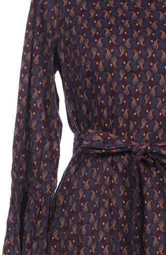 | Details | Rüschen, Langarm, Bindegürtel, Rundhals, Floral |