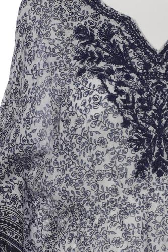 | Details | Stickerei, Chiffon, Kurzarm, V-Ausschnitt, verschlusslos, Floral |