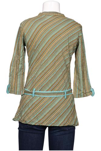 | Details | Jersey, Dreiviertelarm, Bindegürtel, V-Ausschnitt, verschlusslos, Streifen |