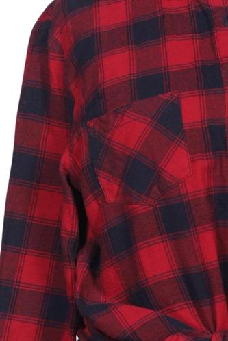 | Details | Flanell, Langarm, Bindegürtel, Rundhals, Front Knopfleiste, Kariert |