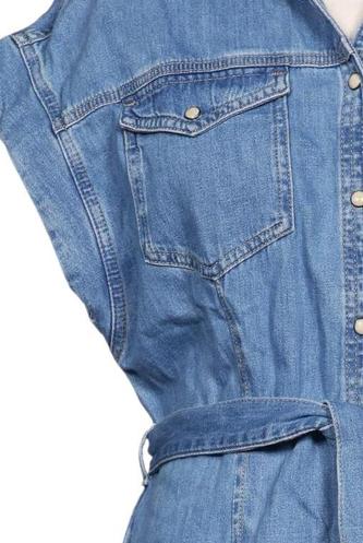 | Details | Jeans, Kurzarm, Bindegürtel, V-Ausschnitt, Front Knopfleiste, Einfarbig |