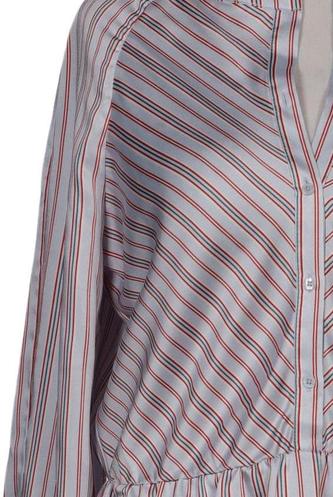 | Details | Satin, Langarm, V-Ausschnitt, Gummizug/Tunnelzug, Streifen |