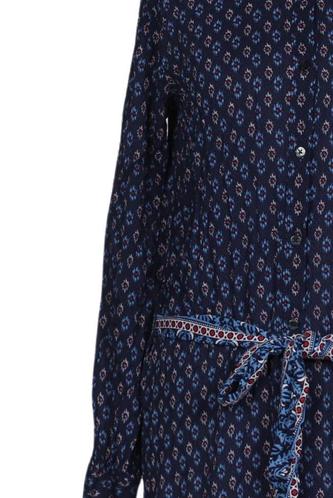 | Details | Langarm, Bindegürtel, Rundhals, Front Knopfleiste, Floral |