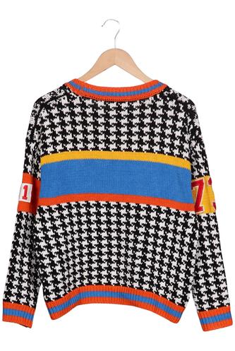 | Details | Grobstrick, Langarm, Rundhals, Hahnentritt |