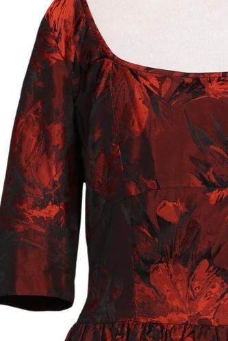 | Details | Satin, Kurzarm, Rundhals, Reißverschluss/Knöpfe hinten, Floral |