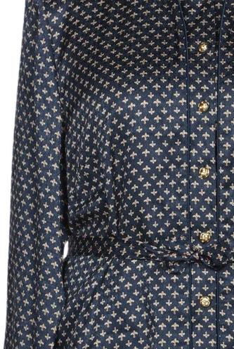 | Details | Satin, Langarm, Bindegürtel, Front Knopfleiste, Motivprint |