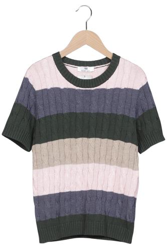 | Details | Grobstrick, Kurzarm, Rundhals, Streifen |