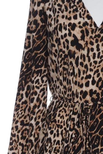 | Details | Jersey, Langarm, Bindegürtel, V-Ausschnitt, Leopard |