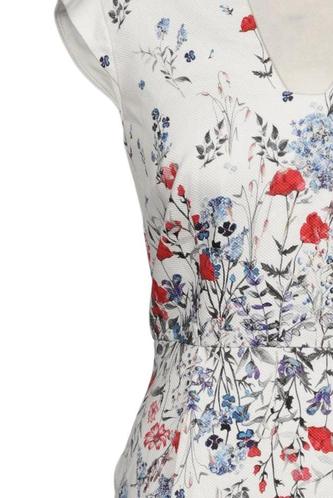| Details | Kurzarm, V-Ausschnitt, Reißverschluss/Knöpfe hinten, Floral |