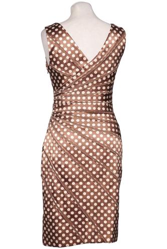 | Details | Satin, ärmellos, V-Ausschnitt, Reißverschluss/Knöpfe hinten, Punkte |