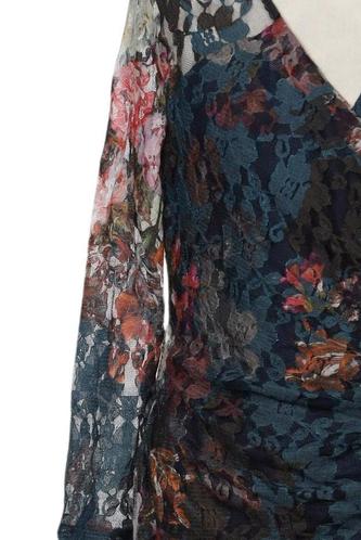 | Details | Jersey, Spitze, Dreiviertelarm, Wickeloptik, V-Ausschnitt, Floral |