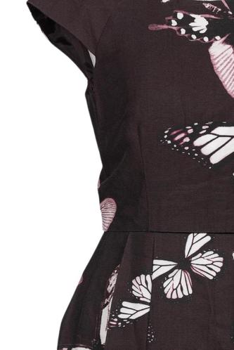 | Details | Plissee, Kurzarm, V-Ausschnitt, Reißverschluss/Knöpfe hinten, Floral |