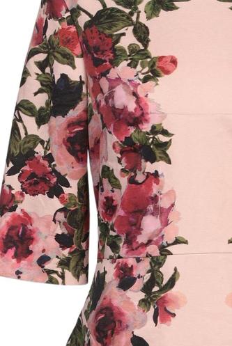 | Details | Dreiviertelarm, Rundhals, Reißverschluss/Knöpfe hinten, Floral |