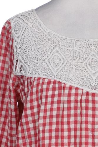 | Details | Jersey, Spitze, Lochstickerei, Dreiviertelarm, Rundhals, verschlusslos, Kariert |
