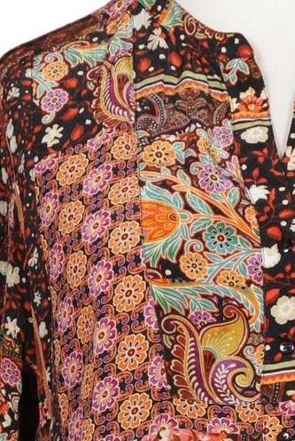 | Details | Satin, Langarm, Front Knopfleiste, Floral, Paisley |