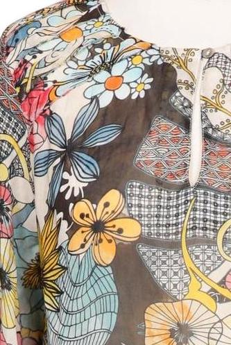 | Details | Chiffon, Langarm, Rundhals, verschlusslos, Floral |