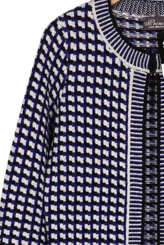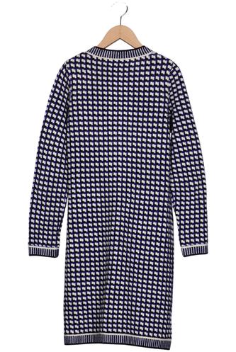 | Details | Grobstrick, Langarm, Rundhals, Front Knopfleiste, Hahnentritt |