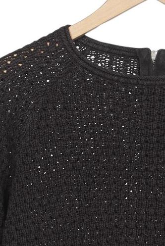 | Details | Grobstrick, Langarm, Rundhals, Reißverschluss/Knöpfe hinten, Einfarbig |