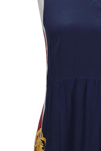 | Details | Satin, Stickerei, ärmellos, Rundhals, Reißverschluss/Knöpfe hinten, Floral, Streifen |