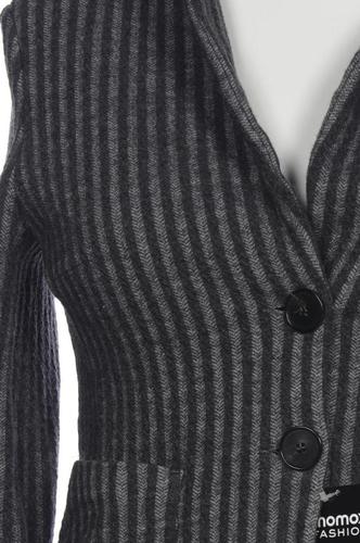 | Details | Grobstrick, Langarm, V-Ausschnitt, Front Knopfleiste, Streifen |