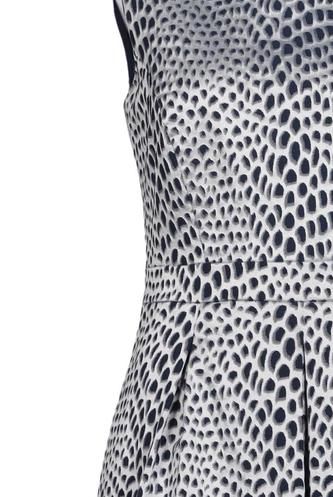 | Details | Satin, Plissee, ärmellos, Rundhals, Reißverschluss/Knöpfe hinten, Punkte |