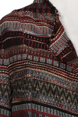 | Details | Fransen, Grobstrick, Langarm, V-Ausschnitt, Front Knopfleiste, Ethno, Streifen |