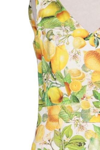 | Details | ärmellos, V-Ausschnitt, Reißverschluss/Knöpfe hinten, Floral |