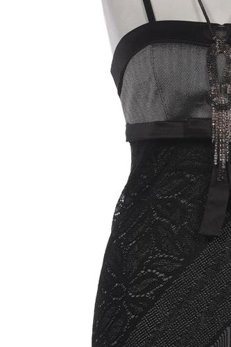 | Details | Satin, Fransen, Spitze, ärmellos, V-Ausschnitt |