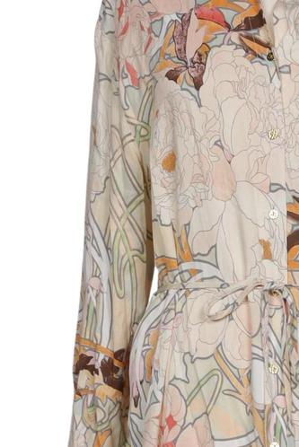 | Details | Langarm, Bindegürtel, V-Ausschnitt, Front Knopfleiste, Floral |