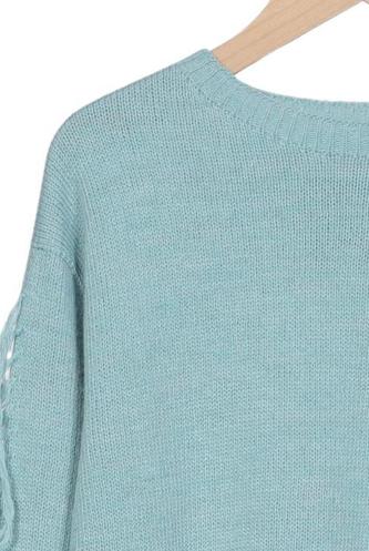 | Details | Fransen, Grobstrick, Langarm, Rundhals, Einfarbig |